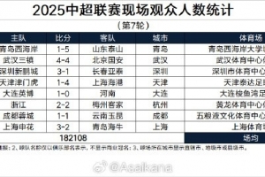 2025中超聯(lián)賽現(xiàn)場觀眾人數(shù)統(tǒng)計(第7輪)