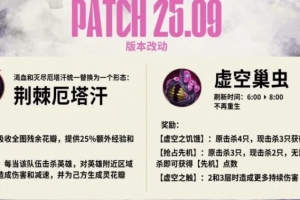 體育資訊5月3日訊 從今天開始LPL將進(jìn)入25.09版本,25.09版本具體改動(dòng)如下: