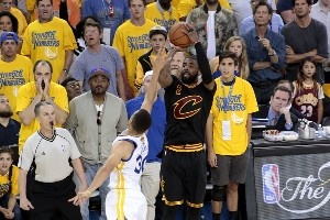 2016年總決賽,騎士在1比3落后的情況下完成了大翻盤,奪得隊史首冠。驚心動魄的搶七大戰(zhàn),騎士最終以93比89取勝。歐文在此役中奉獻(xiàn)了自己職業(yè)生涯至今的經(jīng)典時刻,終場前1分鐘左右(兩隊89-89),騎士的進(jìn)攻回合,歐文在左側(cè)外線單打庫里,只見他連續(xù)胯下運球之后,往右撤步來了一記三分球,皮球應(yīng)聲入網(wǎng),92-89!