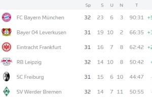 若按此比分結(jié)束,拜仁32輪將積75分,暫時無法確保提前奪冠。目前第二名勒沃庫森理論最高積分為76分,由于拜仁手握凈勝球優(yōu)勢,因此拜仁只需要1分即可奪冠。