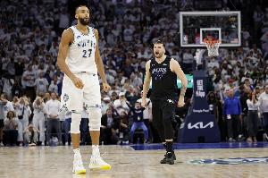 去年NBA西部決賽G2,森林狼108-109遭獨(dú)行俠絕殺,最后時(shí)刻,戈貝爾拼盡全力防守東契奇,但被后者晃到“跳舞”,后者在他頭上命中準(zhǔn)絕殺。