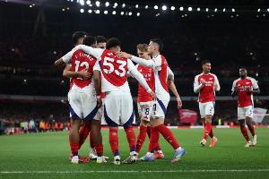 在1/8決賽,阿森納同樣打出大比分,客場7-1狂勝埃因霍溫,主場則2-2戰(zhàn)平,總比分9-3淘汰對手。