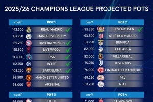 目前,下賽季歐冠36強(qiáng)已確定9席。