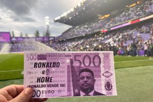 巴拉多利德球迷協(xié)會和Fondo Norte 1928球迷組織印刷了6萬張帶有大羅頭像的假鈔,面額為500歐元,并在賽前分發(fā)給球迷們。羅納爾多在2018年買下巴拉多利德俱樂部時花費了3000萬歐元,而這些假鈔的總額正好是這個數(shù)字。