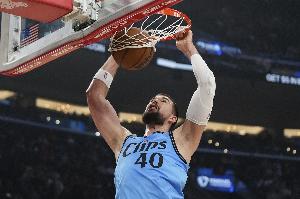 上半場,快船內(nèi)線祖巴茨表現(xiàn)出色,進(jìn)攻端勾手無敵并且籃板也上雙,在20分鐘的時間里,投籃7中4,拿到8分12籃板1助攻1搶斷的數(shù)據(jù)。