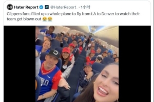 賽后美媒曬出鮑爾默包機(jī)空運(yùn)快船球迷前往丹佛看球的視頻,并寫道:“這趟回LA的航班將成為史上最安靜的航程。”