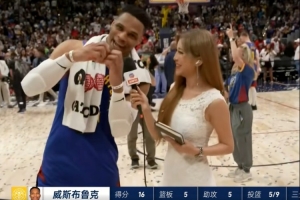 賽后,威少在場邊接受周玲安采訪時向中國球迷比心并雙手合十表達感謝,神態(tài)非??蓯?。