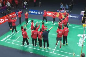 體育資訊05月04日訊 中國隊(duì)3-1擊敗韓國隊(duì),奪得蘇迪曼杯冠軍,劉圣書/譚寧擊敗韓國組合白荷娜/李紹希,國羽全體隊(duì)員圍在一圈慶祝。