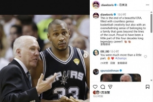 體育資訊5月4日訊 據(jù)此前報道,波波維奇將不再擔任馬刺主教練,并將轉(zhuǎn)型全職擔任球隊總裁。前馬刺球員迪奧社媒對波波維奇致敬。