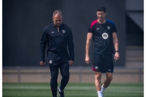 萊萬能否及時恢復出戰(zhàn)此役,成為媒體和球迷更關注的問題。巴薩官方更新社媒動態(tài),曬出萊萬在訓練場上與弗里克的合照,確認這位波蘭前鋒今日恢復合練。