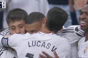 體育資訊05月04日訊 西甲第34輪,皇馬vs塞爾塔。比賽下半場(chǎng)剛剛開始,居勒爾直塞助攻,姆巴佩推射雙響,皇馬3-0勝券在握!