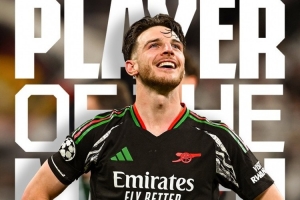 阿森納官方更新社媒動態(tài),曬出為賴斯制作的海報,宣布他當(dāng)選此役球迷票選阿森納隊內(nèi)最佳球員。