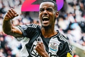 本賽季至今,伊薩克已經(jīng)在英超打入23球,這是自2001-02賽季的阿蘭-希勒以來,紐卡斯爾球員單賽季英超的進球紀錄。
