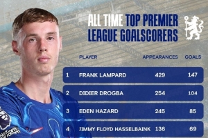 這粒進(jìn)球使得帕爾默在英超賽場(chǎng)為切爾西的進(jìn)球數(shù)達(dá)到37個(gè),進(jìn)入球隊(duì)英超射手榜前十。