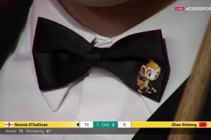 轉(zhuǎn)播中可以看到一個小細節(jié),趙心童領結(jié)上別著個小火猴!
