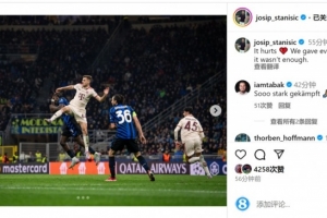 體育資訊4月17日訊 歐冠1/4決賽次回合比賽,斯坦尼西奇踢滿全場,拜仁客場2-2戰(zhàn)平國米,兩回合總比分3-4出局。