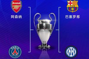 體育資訊04月17日訊 本賽季歐冠半決賽對(duì)陣出爐,阿森納vs巴黎,巴薩vs國(guó)米。