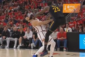 在上半場比賽中,追夢格林應(yīng)激起跳順勢扇到范弗里特吃T。