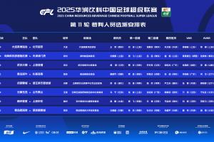 體育資訊05月05日訊 中超官方公布第11輪裁判人員選派安排,馬寧執(zhí)法云南玉昆vs山東泰山,王競執(zhí)法大連英博vs北京國安。