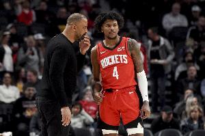 本場比賽,杰倫-格林出戰(zhàn)30分鐘,8中3,其中三分2中0,罰球3中2,得到8分4籃板1助攻1封蓋,正負值-6。他系列賽連續(xù)5場命中率低于40%,也是本系列賽第4次得分未上雙,他得分未上雙的比賽,火箭全負。