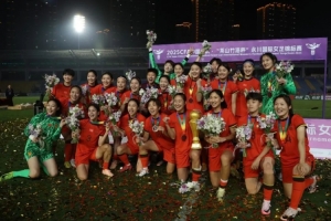 華燈初上,繁星點點,在漫天的金色亮片隨風飄舞中,中國女足隊長吳海燕舉起了永川國際錦標賽的冠軍獎杯。無論是開心地望向天空的朱鈺、姚偉和張馨,拍照錄像停不下來的徐歡,亦或是被響聲嚇了一大跳的門將潘紅艷,她們都是這一場“金色之雨”的主角。
