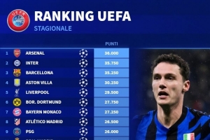 體育資訊4月17日訊 德國(guó)轉(zhuǎn)會(huì)市場(chǎng)統(tǒng)計(jì)了各隊(duì)本賽季的歐戰(zhàn)積分,并列出榜單,阿森納36分居首,國(guó)米、巴薩、維拉二到四位。