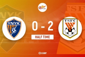 傷停補時5分鐘。上半場比賽結束,云南玉昆0-2山東泰山。