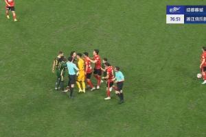 第77分鐘,奧烏蘇前場逼搶犯規(guī),引發(fā)雙方球員沖突。裁判迅速將雙方球員分開。