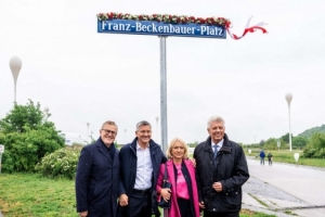 “以他之名的不是一條普通的街道,因為他的人生從未是一條直線;也不是一條皇家的林蔭大道,因為他從不追求華麗。在他眼中,總是重要的是:自由的空間、遼闊的視野、更高層次的目標。在弗朗茨-貝肯鮑爾那里,每個人都有屬于自己的一席之地。他的位置。人們在銘牌下自拍時,也應該時刻記住這一點。”