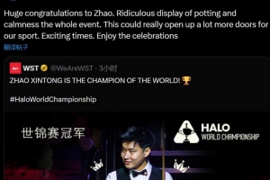 艾倫寫道:“熱烈祝賀趙心童!他在整屆賽事都展現(xiàn)出了令人難以置信的進(jìn)攻火力和冷靜沉著。這次勝利真的有可能為我們的這項(xiàng)運(yùn)動打開更多大門。令人振奮的時刻,好好享受慶祝吧!”