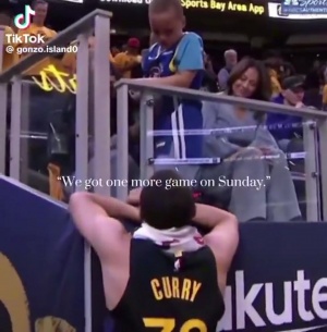 體育資訊05月06日訊 美媒用技術(shù)手段放大了庫里在G6不敵火箭賽后與兒子卡農(nóng)的對話。