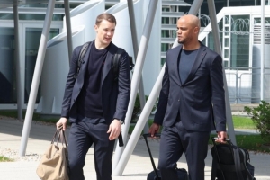 諾伊爾盡管有肌肉傷病,但他仍作為“幸運符”隨隊前往米蘭并坐在國米主場的替補席上。在返程時,他和孔帕尼的談話非常認真,后者看起來也對與諾伊爾的對話非常重視。