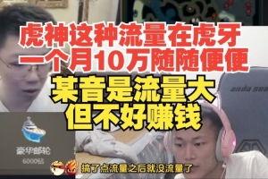 而虎牙平臺的小草包聽完后,對比同平臺虎神的情況說道:虎神這種流量在虎牙一個月10萬隨隨便便!某音是流量大但不好賺錢!