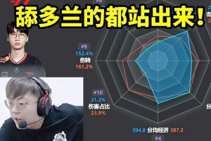 體育資訊5月6日訊 近日Sask直播,觀看了LCK第一輪上單選手的數(shù)據(jù)雷達(dá)圖,看到Doran排第八直接沒(méi)當(dāng)場(chǎng)沒(méi)繃?。禾駾oran的站出來(lái)!