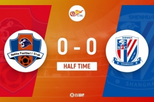傷停補時1分鐘。上半場比賽結(jié)束,梅州客家0-0上海申花。