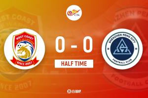 上半場補時3分鐘,青島西海岸0-0深圳新鵬城。