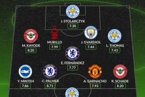 體育資訊5月6日訊 英超第35輪戰(zhàn)罷,數(shù)據(jù)網(wǎng)站W(wǎng)hoscored也盤點了本輪比賽評分最高陣容,其中加納喬、恩佐等在列,具體如下: