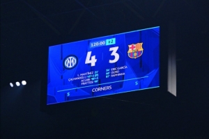 體育資訊5月7日訊 歐冠半決賽次回合,國米通過加時(shí)賽4-3擊敗巴薩,國米官方在賽后曬出了本場比賽的比分板。