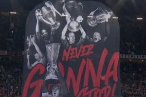 此役老特拉福德出現(xiàn)了曼聯(lián)隊長們捧起歐戰(zhàn)獎杯的TIFO,上面寫有“永不止步”的字樣,以激勵曼聯(lián)球員,最終曼聯(lián)在加時賽落后2球的情況下,連進3球逆轉(zhuǎn)晉級。