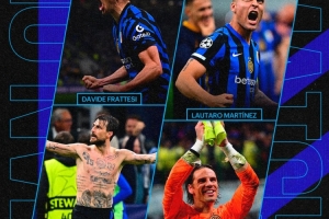 體育資訊5月7日訊 不久前,國(guó)米官方進(jìn)行了4-3巴薩的最佳球員票選活動(dòng),弗拉泰西、勞塔羅、阿切爾比和索默進(jìn)入候選名單。