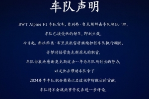 Alpine官方寫道:我們由衷地感謝奧克斯自去年加入車隊(duì)以來所付出的努力,以及他在幫助車隊(duì)奪得2024賽季車隊(duì)積分榜第六名過程中做出的貢獻(xiàn)。