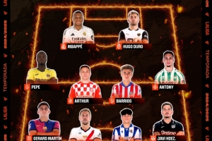 體育資訊5月7日訊 西甲官方列出了第34輪比賽最佳陣容,姆巴佩、安東尼、杰拉德-馬丁在列。