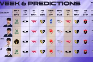 體育資訊5月7日訊?本周韓文流預(yù)測:今天和KT的比賽全部看好DK,周六T1 vs DK預(yù)測獲勝一半一半。