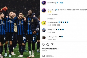 體育資訊5月7日訊 歐冠半決賽,國(guó)米以7-6的總比分淘汰巴薩晉級(jí)決賽,在次回合4-3取勝,德弗里在賽后更新了社交媒體。