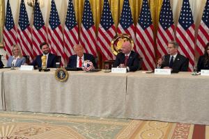 特朗普:“我同意,這難道不是一個(gè)很好的結(jié)束戰(zhàn)爭(zhēng)的獎(jiǎng)勵(lì)嗎?我們想阻止令人悲傷的事情一直發(fā)生,每周有5000名年輕人被殺害?!?/p>