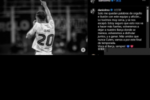 體育資訊5月7日訊 歐冠半決賽次回合,巴薩不敵國米遭淘汰,奧爾莫賽后社媒發(fā)文談自己的感受。