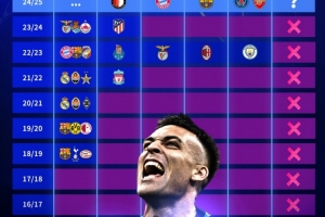 這是國(guó)米近3個(gè)賽季第2次打進(jìn)決賽,球隊(duì)近10年歐冠戰(zhàn)績(jī)具體如下: