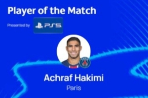 體育資訊5月8日訊 歐冠半決賽次回合,巴黎圣日耳曼2-1戰(zhàn)勝阿森納。賽后,巴黎后衛(wèi)阿什拉夫當(dāng)選全場最佳。