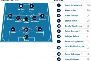 國米替補:1-漢達諾維奇(已退役)、21-科爾達茲(已退役)、5-加利亞爾迪尼(已離隊)、6-德弗里、8-戈森斯(已離隊)、11-華金-科雷亞、12-貝拉諾瓦(已離隊)、14-阿斯拉尼、22-姆希塔良、33-丹布羅西奧(已離隊)、37-什克里尼亞爾(已離隊)、90-盧卡庫(已離隊)