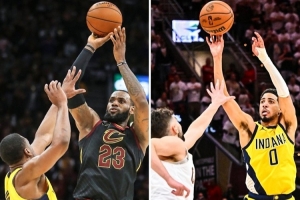 有網(wǎng)友比較了2018年首輪G5騎士前鋒詹姆斯三分壓哨絕殺步行者和今年次輪G2步行者后衛(wèi)哈利伯頓三分絕殺騎士的畫面。